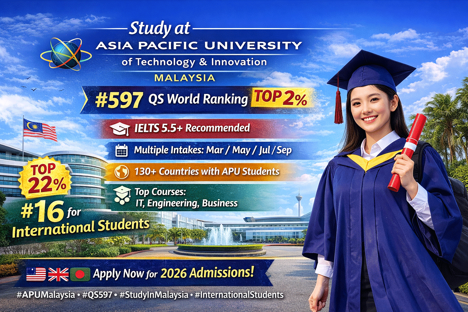 Asia Pacific University of Technology & Innovation (APU) ভর্তি গাইড 2026: QS Ranking, IELTS Requirements, Fees ও আন্তর্জাতিক শিক্ষার্থীদের জন্য সব তথ্য